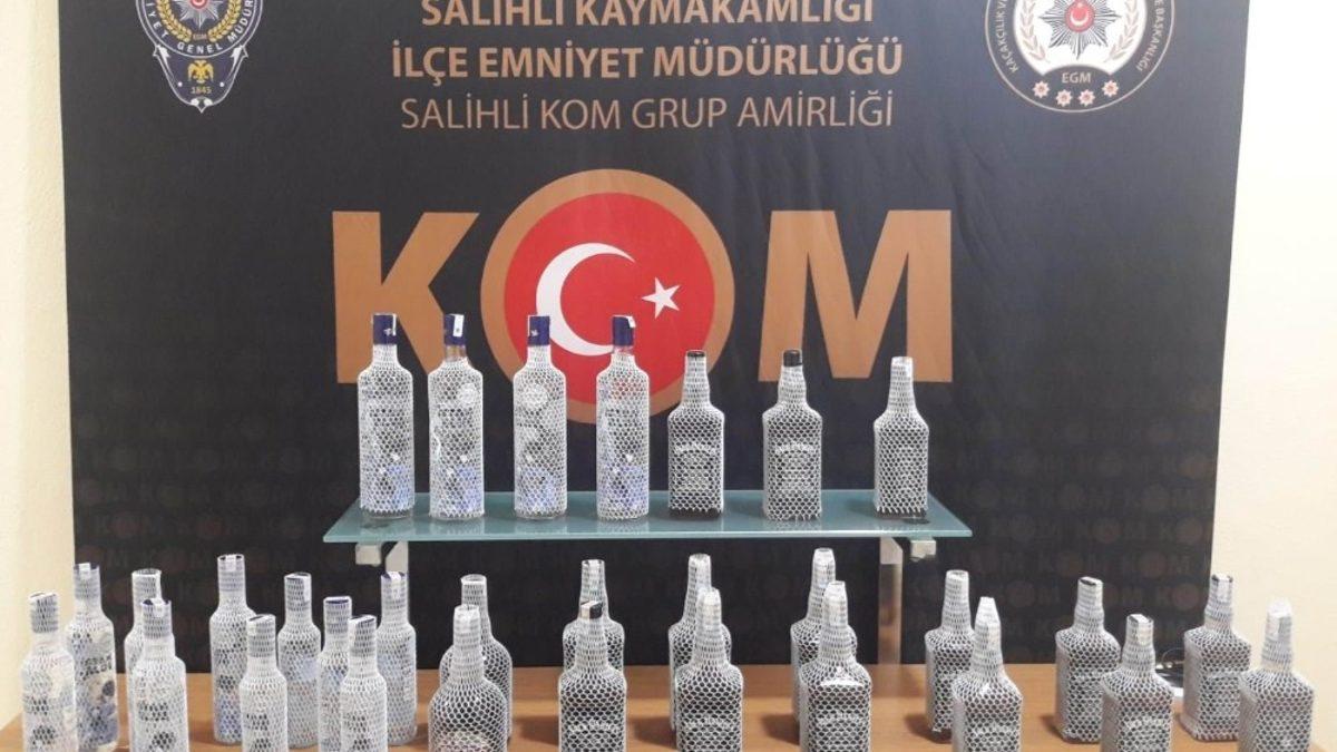 Manisa’nın Salihli ilçesinde polisin şüphe üzerine durdurduğu araçta çeşitli markalarda 31 şişe kaçak içki ele geçirildi.
