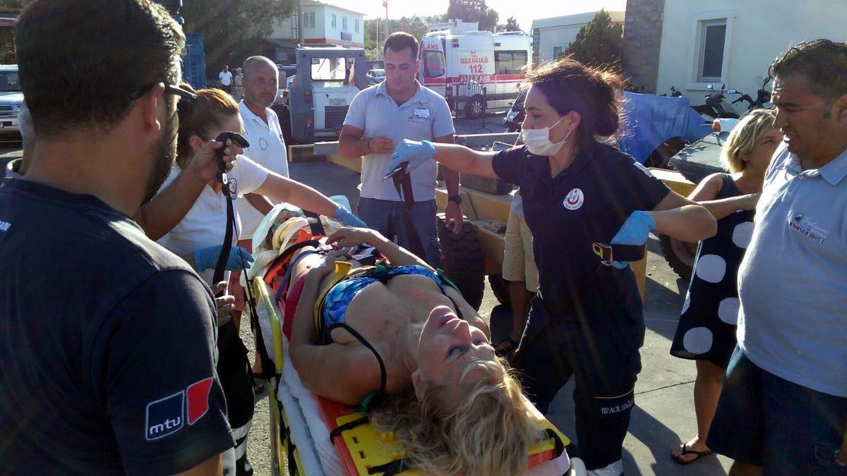 Olay, cumartesi günü, Bitez Adaboğazı Mevkii Akvaryum Koyu'nda meydana geldi. Kıyıdan yaklaşık 15 metre açıkta yüzen Gülseren Ayvazoğlu, Gökhan Arsoy'un kullandığı 8 metrelik 'Cigarettes' isimli sürat teknesinin üzerinden geçmesiyle yaralandı. Ayvazoğlu, Bodrum Deniz Kurtarma Derneği'ne ait 'Yaşam ambulans teknesi' ile hastaneye yetiştirildi. İlçede özel bir hastanede geçirdiği ameliyat sonrası hayati tehlikeyi atlatan Ayvazoğlu'nun, bacaklarının diz altından yaralandığı belirtildi. Ayvazoğlu'na çarptıktan sonra kaçtığı öne sürülen Gökhan Arsoy ise sevk edildiği adliyede adli kontrol şartıyla serbest bırakıldı.
