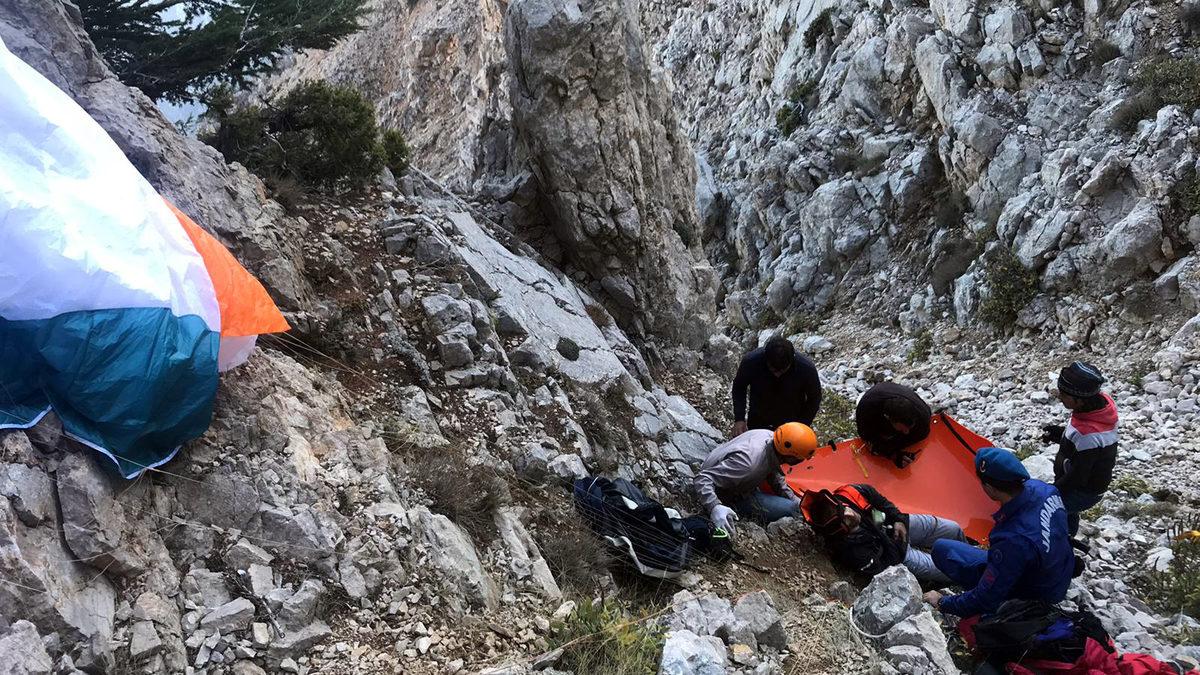 Bölgenin sarp ve kayalık olması nedeniyle Fabian Pewuiot'un çıkarılması mümkün olmayınca Antalya Valiliği'nin talebiyle Dalaman Deniz Hava Üs Komutanlığı'ndan görevlendirilen ekip, Sikorsky helikopterle Fransız paraşütçüyü saat 22.50'de olay yerinden aldı. Akdeniz Üniversitesi Hastanesi'ne götürülen Fabian Pewuiot, tedaviye alındı.