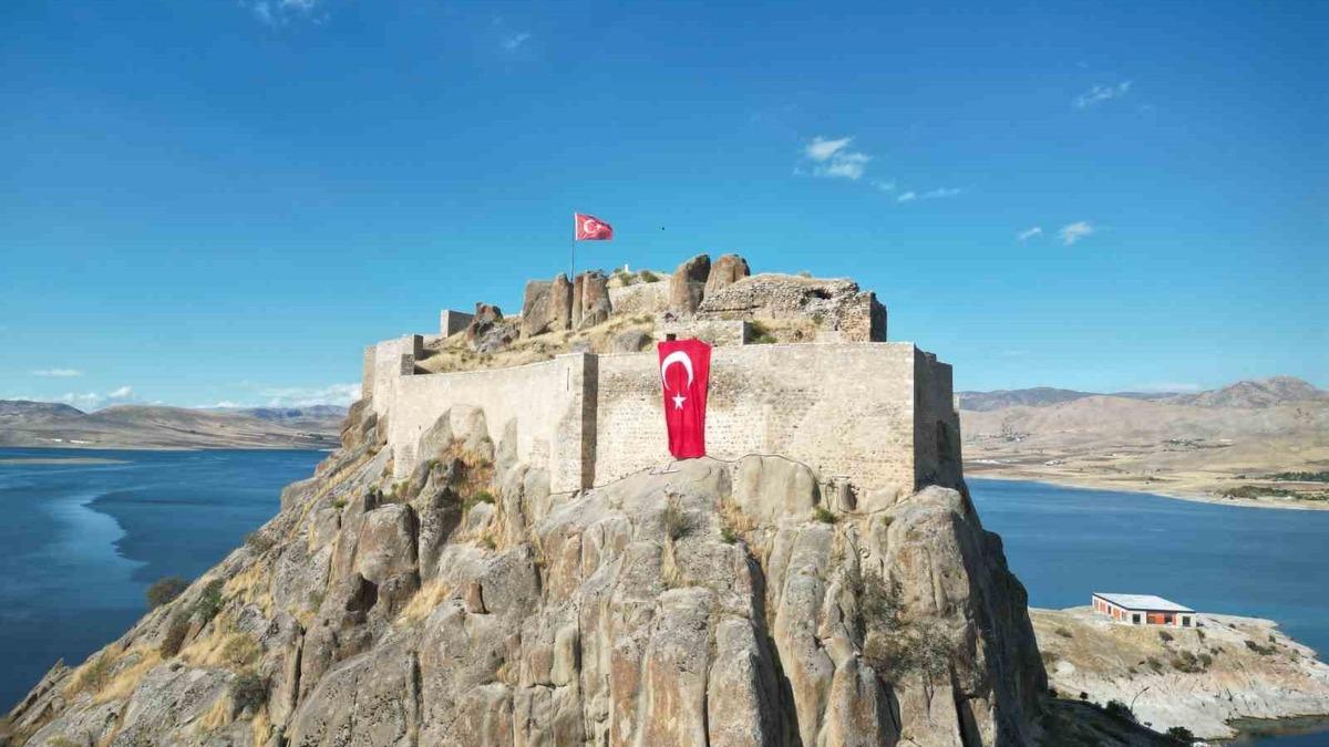 Tunceli’nin Pertek ilçesinde Keban Baraj Gölü üzerinde yer alan tarihi Pertek Kalesi, 29 Ekim Cumhuriyet Bayramı dolayısıyla anlamlı bir etkinliğe ev sahipliği yaptı. Kalenin bulunduğu adada restorasyon çalışmalarını sürdüren işçiler, Cumhuriyetin 102. yılı anısına kalenin surlarına 50 metrekarelik dev bir Türk bayrağı astı. İşçilerin kendi inisiyatifleriyle gerçekleştirdiği bu anlamlı davranış, adadaki tüm ekip tarafından gururla karşılandı.