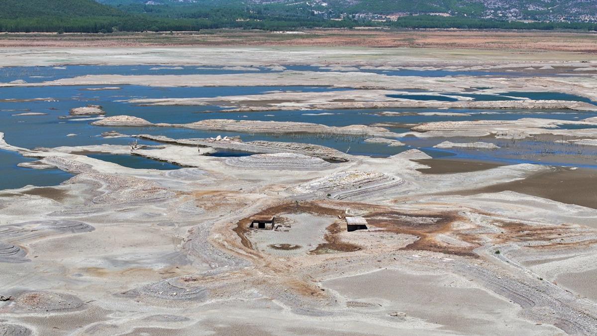 Yıllık ortalama 90 milyon metreküp su çekilen barajdaki kuraklığın etkisiyle havzanın büyük bölümü adeta ovaya dönüştü. Sadece küçük bir noktada suyun kalması nedeniyle havzada adacıkların oluştuğu, eski yapıların ortaya çıktığı, zeminin çatladığı görüldü.