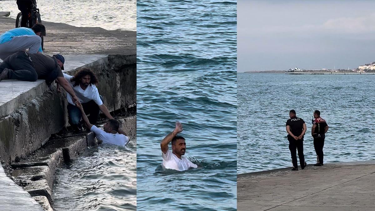 Olay anı çevredeki vatandaşlar tarafından cep telefonu kameralarıyla kaydedildi. Görüntülerde şahsın denizde bekleyişi ve teslim olma anı yer aldı.