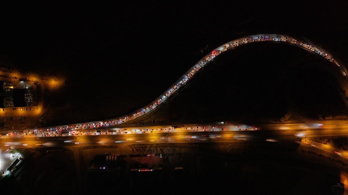 Ulaşımda 43 ilin geçiş noktası olarak bilinen "kilit kavşak" Kırıkkale’de, ara tatilin sona ermesiyle birlikte karayollarında yaşanan trafik yoğunluğu havadan görüntülendi. Bir haftalık tatilin ardından, Milli Eğitim Bakanlığı’na (MEB) bağlı yaklaşık 18 milyon öğrenci ile 1,2 milyon öğretmen pazartesi günü yeniden ders başı yapacak. Tatilcilerin yollara akın etmesiyle şehirler arası karayollarında da trafik hareketliliği arttı.