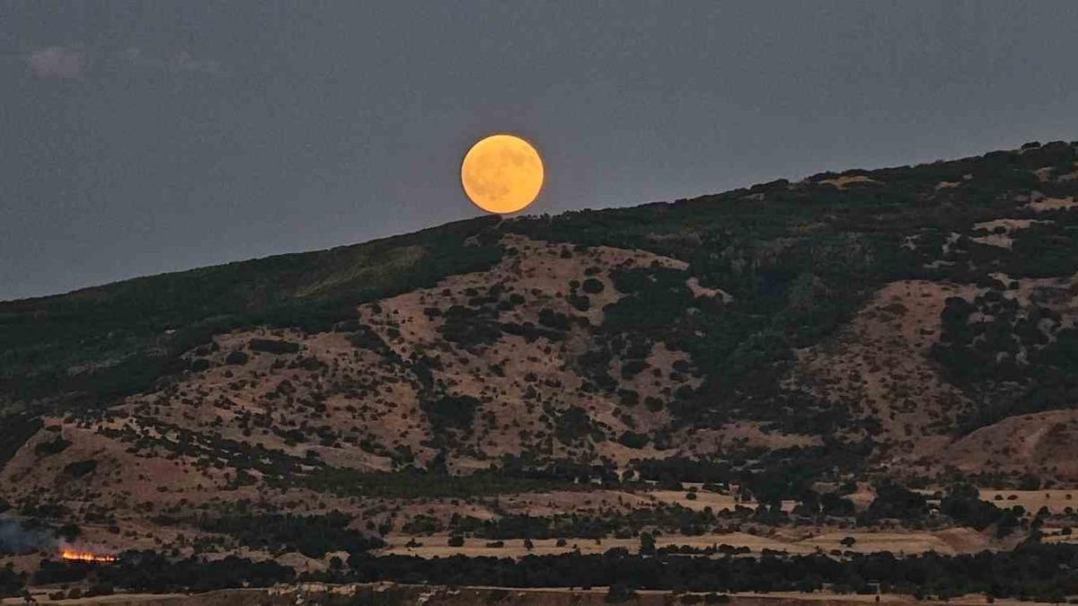 Van Gölü’nün sularına yansıyan devasa Ay, dağların ardından yükseldikçe önce kızıl renge büründü. Bir süre yarım ay şeklini alan ay, daha sonra tamamen kızıl tonlarına dönerek görsel bir şölen sundu.