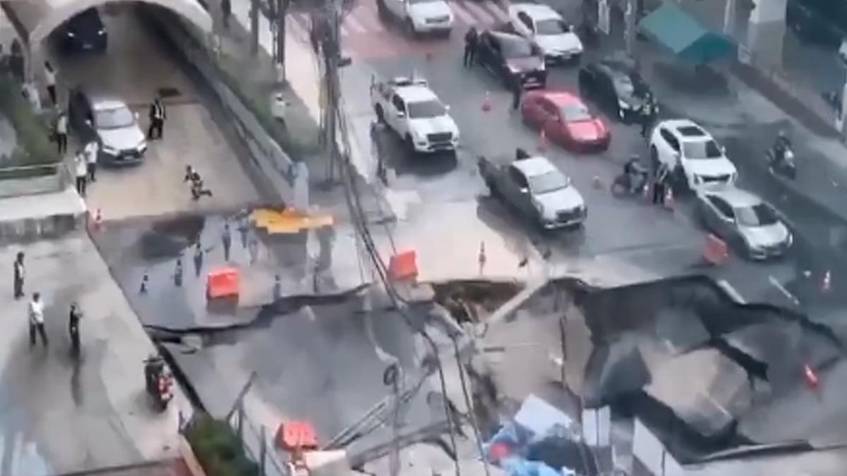 Dehşete düşüren olayın adresi Tayland oldu. Ülkenin başkenti Bangkok'ta Vajira Hastanesi önündeki caddede bulunan yol bir anda çöktü.