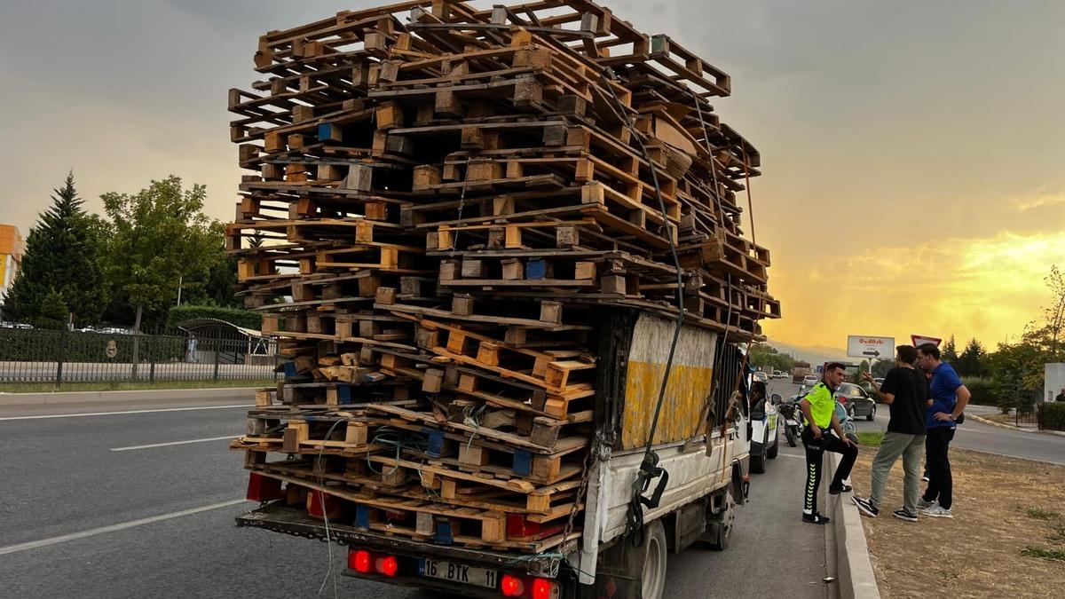 Bursa'nın İnegöl ilçesinde tehlikeli şekilde yük taşıyan kamyonetin sürücüsüne ceza yağdı.