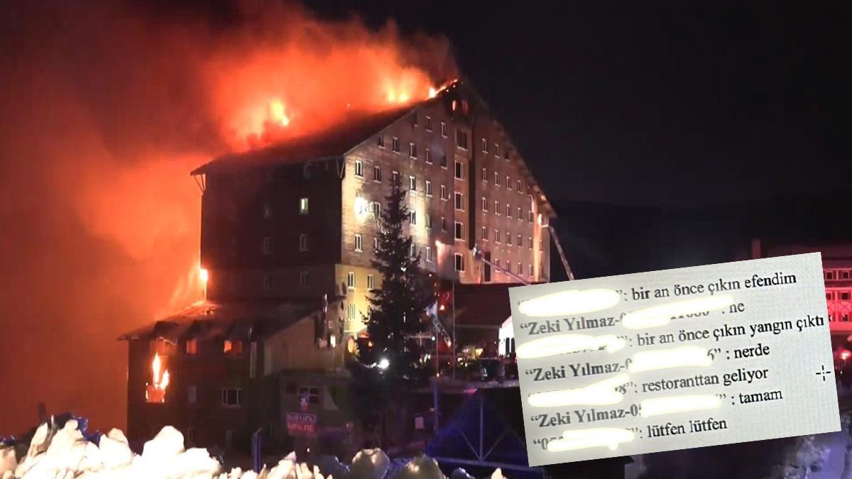 Zeki Yılmaz’ın telefon dökümünde 21 Ocak gecesi saat 03.30’da otel yetkilileri ile 14.6 saniyelik görüşme yaptığı ve otel yetkililerine ‘Bir an önce çıkın efendim. Bir an önce çıkın yangın çıktı. Restorandan geliyor. Lütfen lütfen” şeklindeki konuşması da dava dosyasında yer aldı.