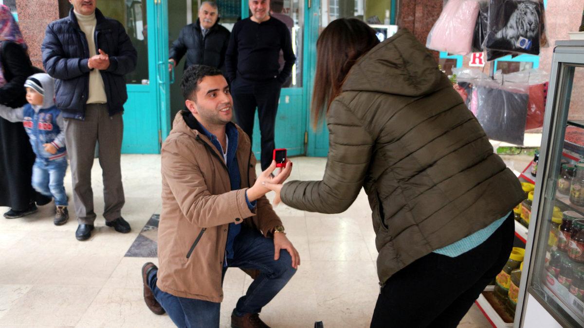 İstanbul'da bir kafede çalışan Hüseyin Baydemir, Tokat Gaziosmanpaşa Üniversitesi İktisat Fakültesi 3’ncü sınıf öğrencisi kız arkadaşı Ertürk'e sürpriz teklif yapmaya karar verdi. Tokat Belediyesi Otobüs Terminali yetkilileri ile görüşen Baydemir, destek istedi. Otobüsle İstanbul’dan Tokat’a kız arkadaşının yanına gelmek için yola çıktı. Bu sırada kız arkadaşını arayan Baydemir, terminalde kendisini karşılamasını istedi. Otobüs terminale yaklaşınca, terminal görevlileri ''Sayın Yeşim Ertürk, Hüseyin Baydemir tarafından size bir not var. Bu güzel yolda ve çıktığı her yolculukta sizinle birlikte olmak istiyor. Çıktığı her yolun sonunda sizi görmek istiyor. En büyük mucizesi sizsiniz. Onunla bir ömür birlikteliğe var mısınız?'' anonsunu yaptı. Ardından Ertürk ile buluşan Baydemir, elindeki yüzük ve çiçek ile kız arkadaşının önünde diz çökerek evlenme teklifinde bulundu. Telifi kabul eden Ertürk erkek arkadaşına sarıldı.