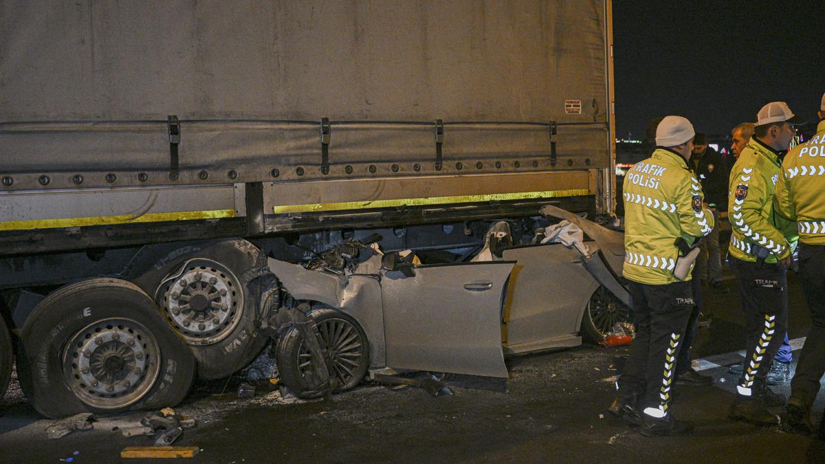 Çarpmanın etkisi ile otomobil tırın altına girerken yaklaşık 300 metre sürüklendi.