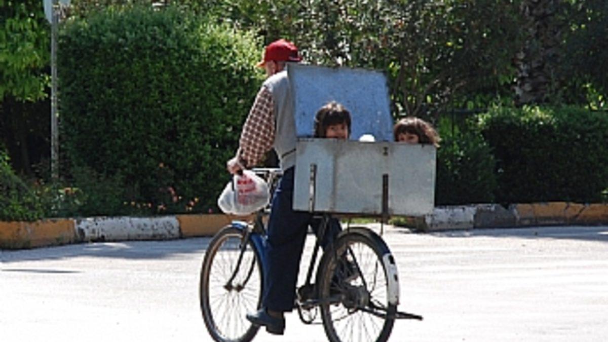 Yaşar Sabah (55) adlı kapıcı, misafirliğe gelen torunlarını parka götürmek için bisikletine yaptırdığı metal sepete bindirdi. 3 yaşındaki Semanur ile 4 yaşındaki İpek Çetin, servis sepetinin içinde vatandaşların şaşkın bakışları arasında yolculuk yaptı. Torunlarını kırmak istemediğini ancak parkın da uzak olmasından dolayı bu yola başvurduğunu söyleyen Yaşar Sabah, "Ben torunlarımla bisikletle gidiyorum, eşim ve kızım ise yürüyerek geliyorlar. Torunlarımı parkta oynattıktan sonra aynı yolla eve