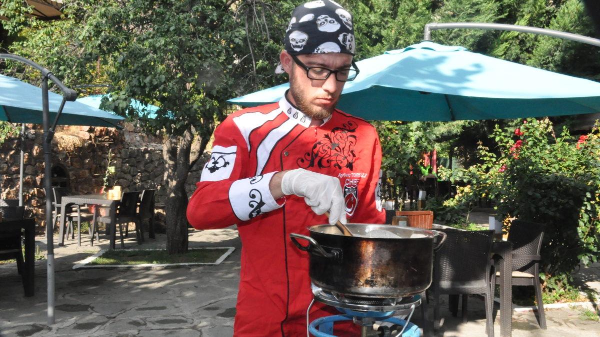 Sinan UÇAR/GÜMÜŞHANE,(DHA) - GÜMÜŞHANE'de Zigana Mesleki ve Teknik Anadolu Lisesi öğrencileri, Karadeniz mutfağının vazgeçilmezi arasında yer alan ve özellikle yabancı turistlerin kahvaltıda tercih ettiği Trabzon kuymağını andıran yöreye has 'kakışlı kuymak' yaparak, hünerlerini sergiliyor. Kaşıkla üzerinde yapılan kakma hareketinden adını alan farklı lezzet, turistlerin yanı sıra müşterilerinden de tam not alıyor.