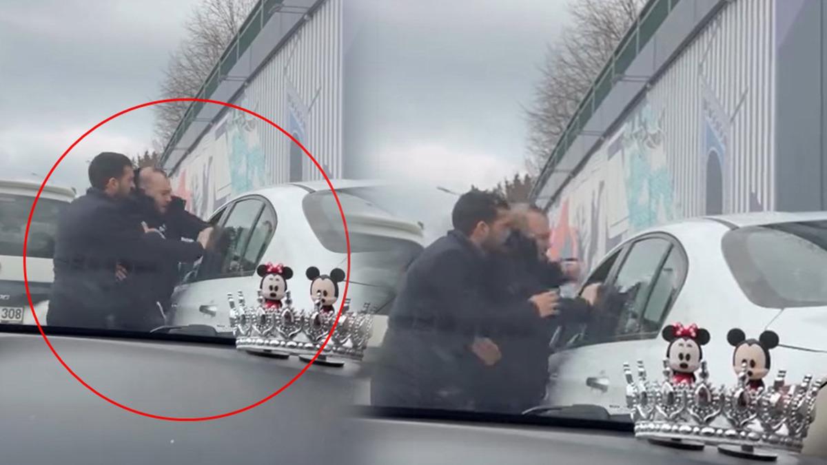 Sürücü, hafif ticari aracı ile otomobilin önünü kesti, ardından aşağı inip yanındaki 2 kişi ile otomobil sürücüne yöneldi. Otomobil sürücüsünün camını açması ile 2 kişi, araç içine doğru yumruk savurdu. O anlar, diğer sürücüler tarafından kaydedildi.