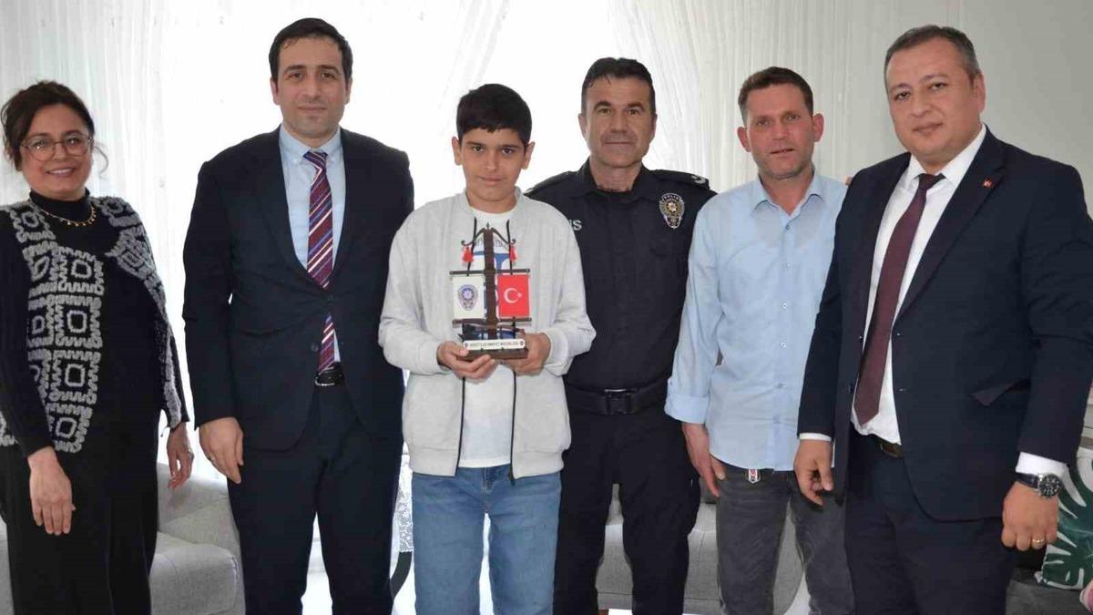 Bilecik’te geçtiğimiz gün bir polis otosunun önünde bulunan Türk bayrağının üzerinin karla kaplı olduğunu görünce eliyle karları temizleyen 8’inci sınıf öğrencisi Mustafa Berke Karabacak’ı kaymakam ödüllendirdi.