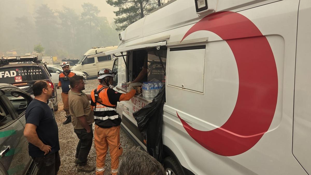 "Türk Kızılay, Muğla'nın Köyceğiz ilçesiyle Antalya'nın Alanya ilçesinde devam eden orman yangınlarına müdahale çalışmalarına desteğini sürdürüyor. Yaklaşık 50 kişilik personel ve gönüllü ekibiyle sahadaki desteğini aralıksız sürdüren Kızılay, yangınlara müdahale eden ekiplerle yangınlardan etkilenen vatandaşlara yönelik beslenme hizmeti sağlıyor." (AA)