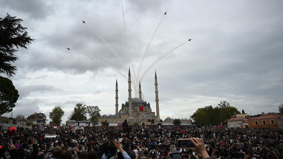 Cumhuriyetin 102. yılı kutlamaları kapsamında havalanan Türk Yıldızları, Mimar Sinan’ın ustalık eseri Selimiye Camisi'nin üzerinde uçuş yaptı.