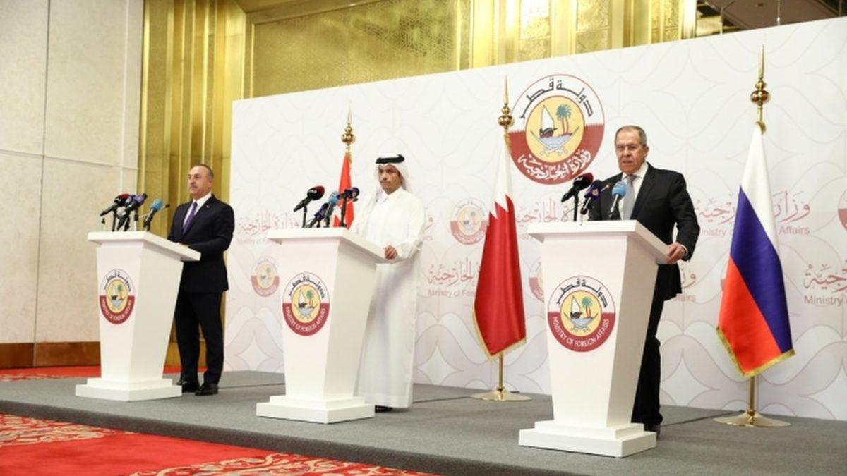 Türkiye, Rusya Federasyonu ve Katar dışişleri bakanları Mevlüt Çavuşoğlu, Sergey Lavrov ve Muhammed bin Abdurrahman el Sani, 11 Mart'ta Doha'da gerçekleştirdikleri üçlü toplantının ardından yaptıkları açıklamalarda, Suriye sorununun siyasi yollarla çözümü ve Suriye halkına insani yardımların ulaştırılması amacıyla yeni bir mekanizma kurduklarını ilan ettiler.