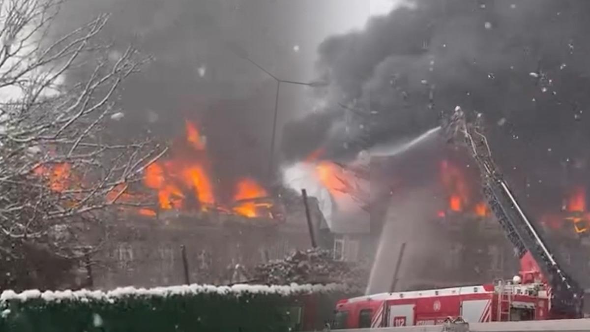 Yangın nedeniyle gökyüzünü siyah duman kapladı.