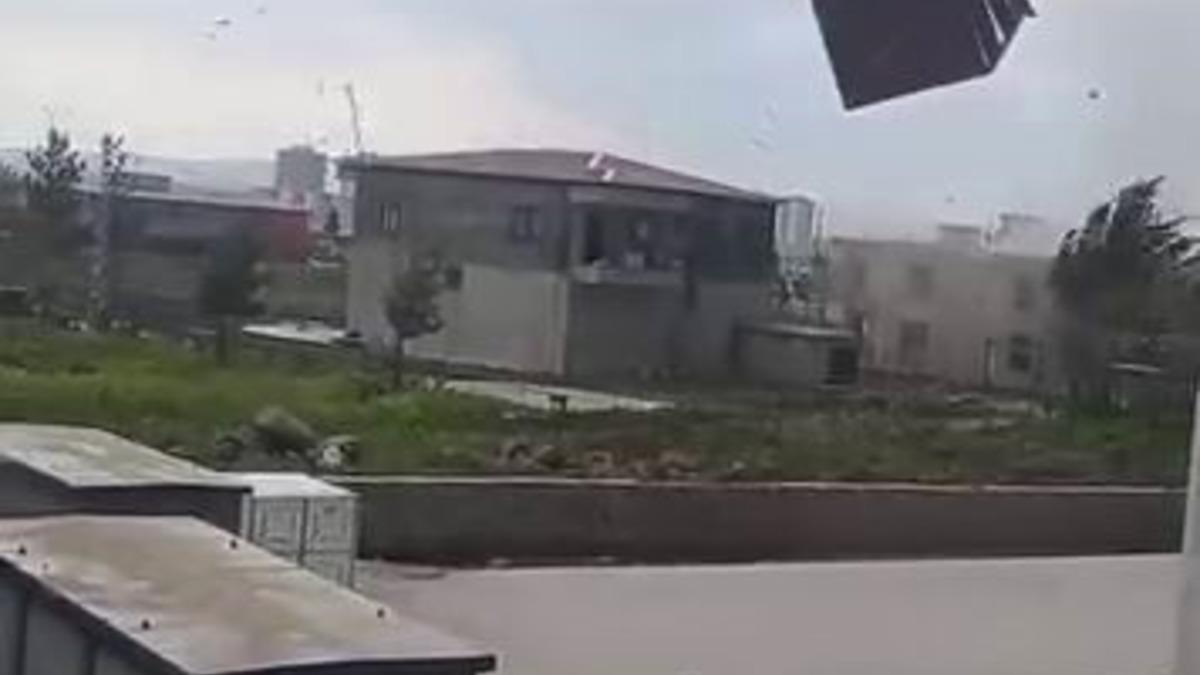 Şiddetli rüzgar nedeni ile çatının uçma anı cep telefonu kameralarına yansıdı.