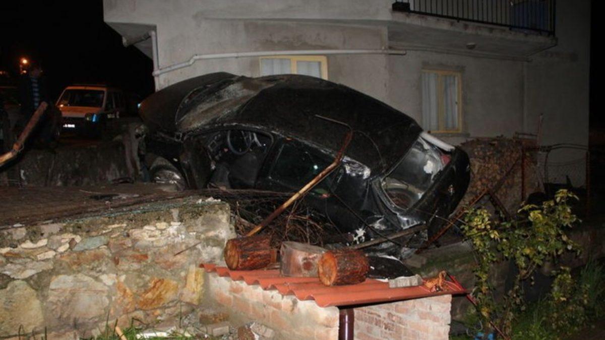Uçurumdan yuvarlanan otomobil evin duvarına çarparak durabildi!