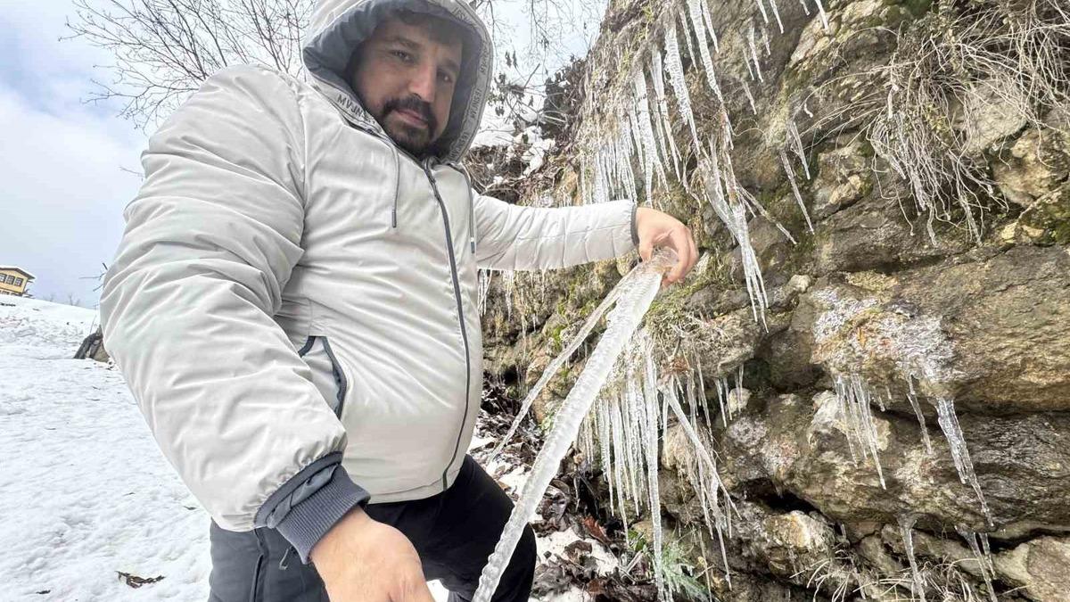Karabük’ün Safranbolu’da hava sıcaklıklarının eksi 13 dereceye kadar düşmesiyle yamaç, kayalıklar ve tarihi konakların çatı saçaklarında oluşan buz sarkıtları görsel şölen oluşturdu.