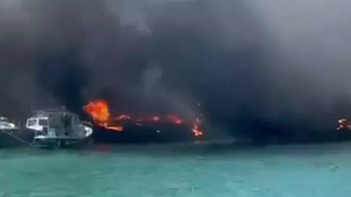 Urla'nın Çeşmealtı bölgesinde limanda bulunan bir teknede, saat 12.30 sıralarında yangın çıktı. Tekneden yükselen siyah duman gökyüzünü kapladı.