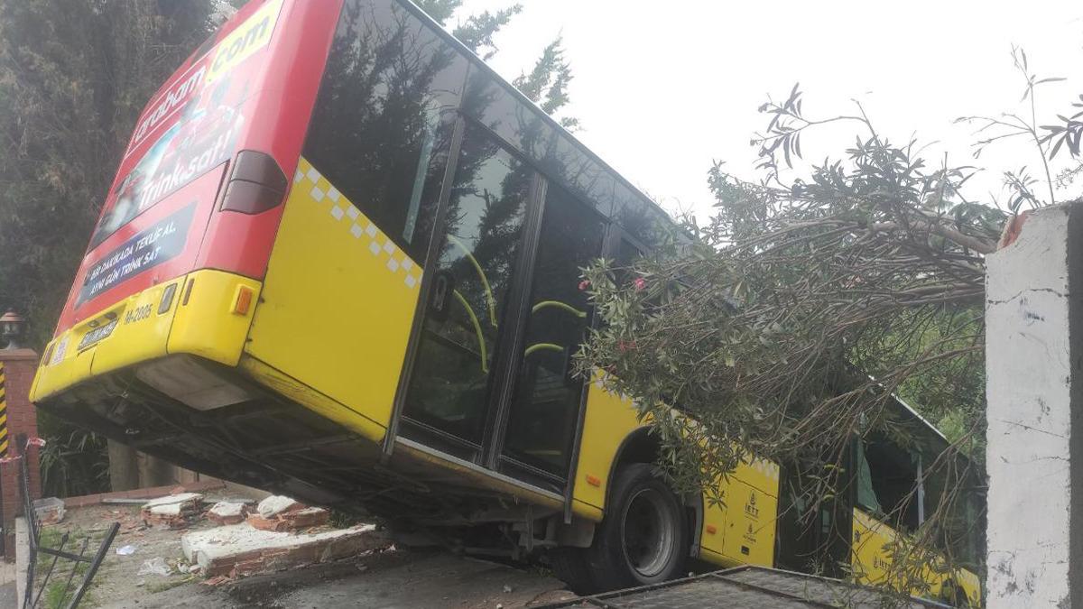 Şoförünün el frenini çekmeyi unutarak indiği otobüs, bir süre sonra hareket etmeye başladı. İçerisinde yolcu bulunmadığı öğrenilen otobüs yokuş aşağı kayarak yolun sonundaki bahçe duvarına çarptı.