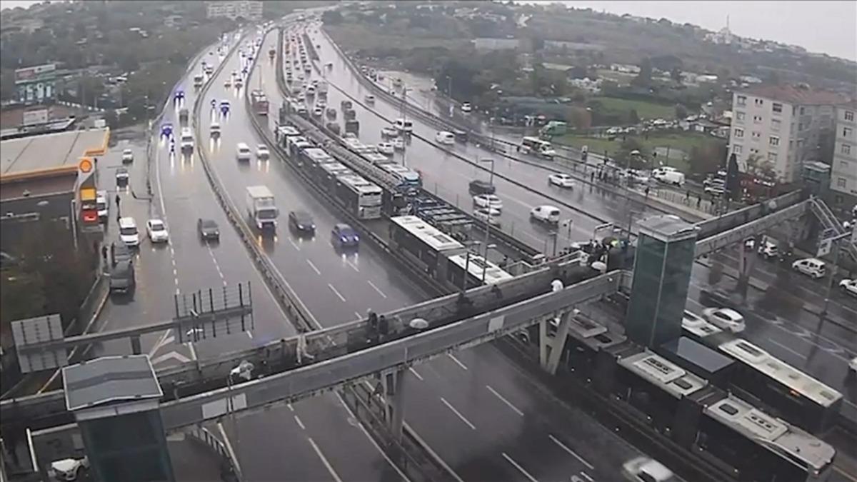 Söğütlüçeşme istikametinde ilerleyen bir metrobüs, Şükrübey durağında arızalandı. Arıza nedeniyle seferler aksarken duraklar kalabalıklaştı.