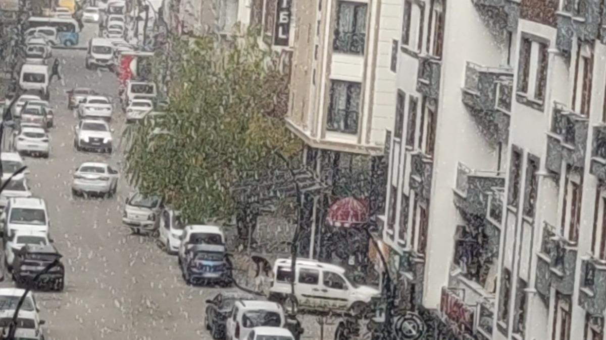 Van’da aniden başlayan kısa süreli dolu yağışı, kent merkezini beyaza bürüdü.