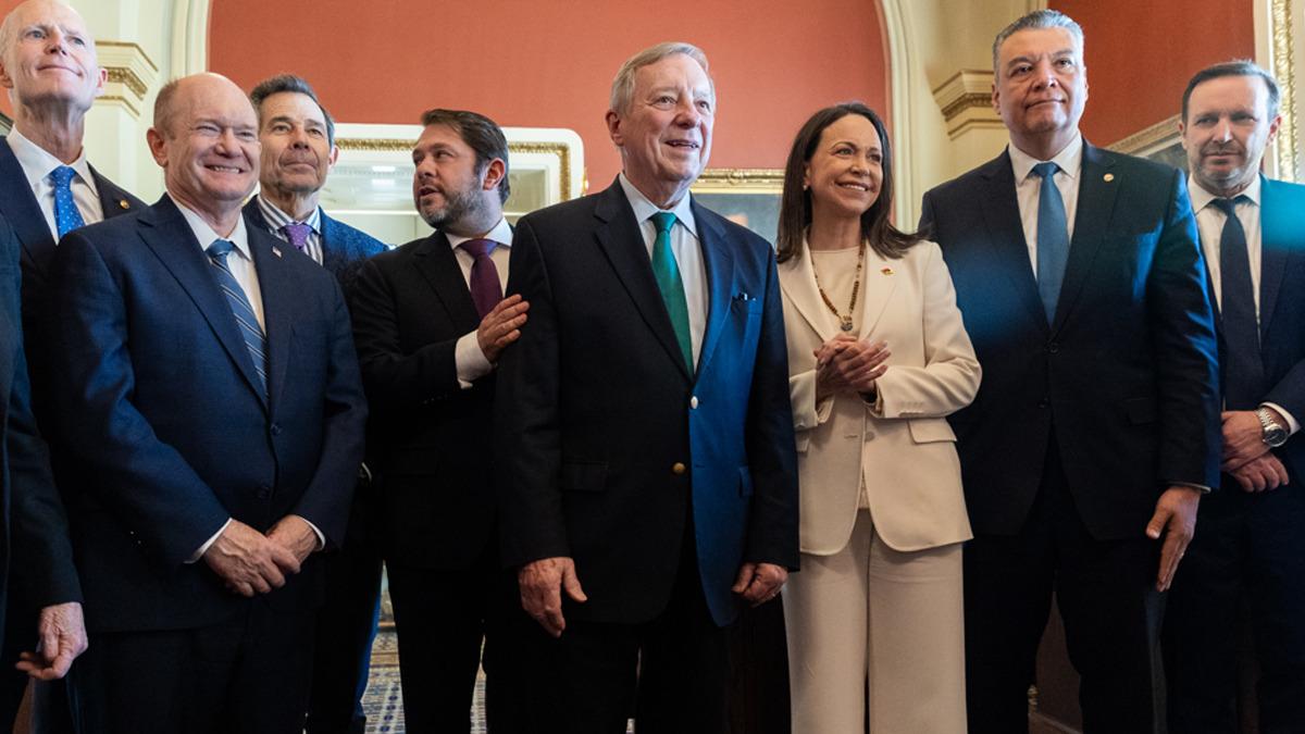 Trump'ın an itibarıyla Venezuelalı muhalif lider Machado ile basına kapalı toplantıda bir araya geldiğini kaydeden Leavitt, Trump'ın bu görüşmenin çok olumlu geçmesini beklediğini vurguladı.