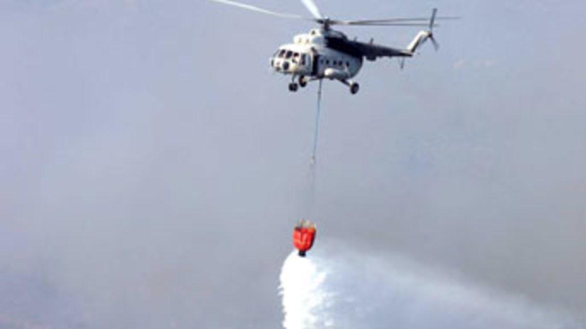 Muğla'nın Milas ilçesine bağlı Koru köyünde çıkan bir tarım arazisi yangınına müdahale eden yangın söndürme helikopteri, özel bir işletmeye ait balık üretim çiftliğindeki havuzdan su alınca tepki gördü.