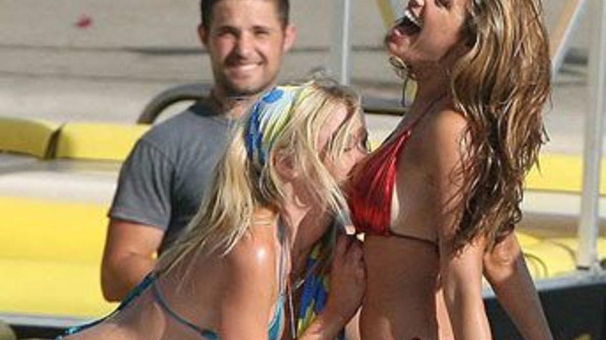 Kelly Brook ile rol arkadaşı Riley Steele, 2010'da gösterime girecek 'Pirana' filmi için kamera karşısına geçtiler. Kelly'nin rol arkadaşının göğsünü ve selülitlerini kontrol etmesi şaşkınlık yarattı...
