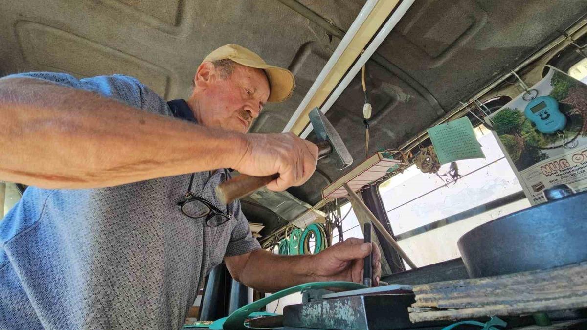 Küçücük minibüsünde sıcak havaya aldırış etmeden çalışan İrfan Usta, yarım asırlık emeğiyle hem sanayi esnafına hem de vatandaşlara güven vermeye devam ediyor.