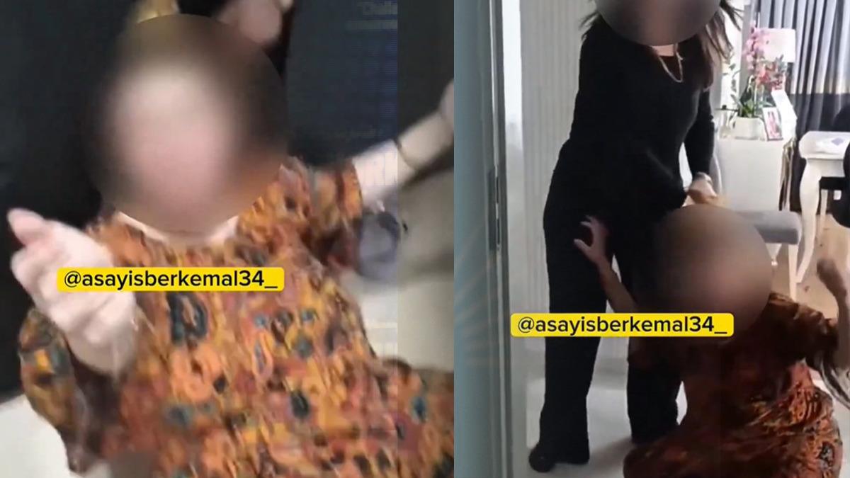 Paylaşılan görüntülerde, eşini başka bir kadınla suçüstü yakalayan kadın, "Senin kocan yok mu? Seni evime buyur ettim, çayımı içtin" diyerek kadına fiziksel şiddet uyguladı.