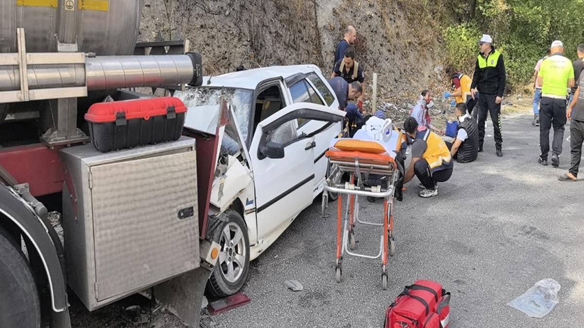 Bursa'da İnegöl ilçesinde, otomobilin park halindeki asit yüklü tankere arkadan çarptığı kazada, aynı aileden 1’i bebek 5 kişi yaralandı.
