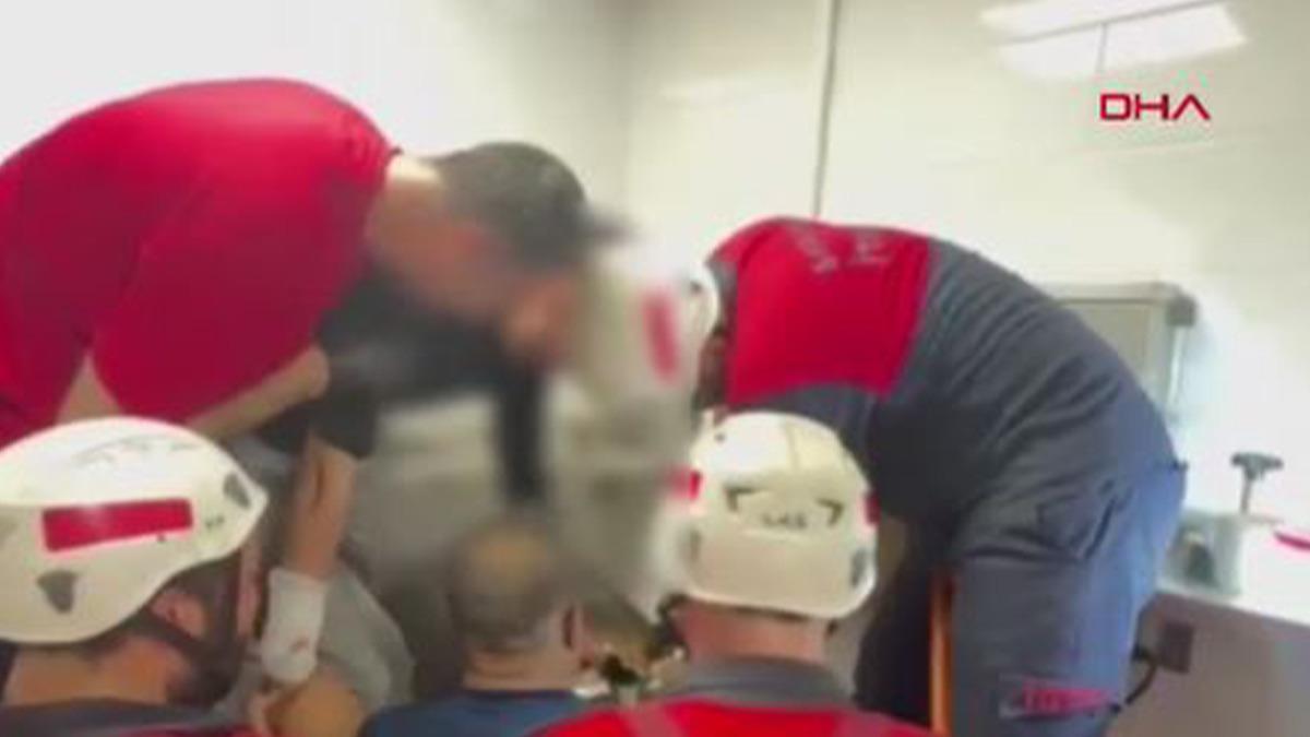 İsmail K. kıyma makinesiyle birlikte hastaneye kaldırıldı. İtfaiye ekipleri, makineyi keserek İsmail K.'nın elini sıkıştığı yerden kurtardı.