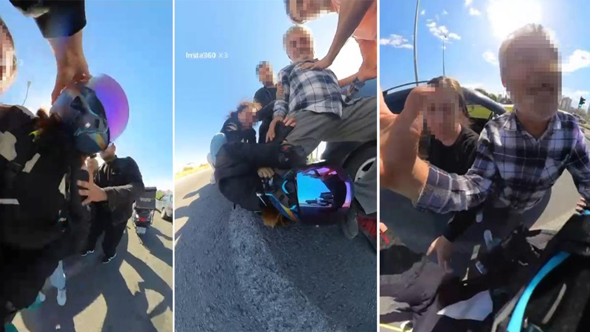 O anlar, çevredekilerin cep telefonu kamerasına yansıdı. Görüntülerde, motokuryenin otomobilin sürücüsünü yumrukladığı, aracın içindeki kadının da ‘Sen napıyorsun? Çocuk var’ diye bağırdığı duyuldu.