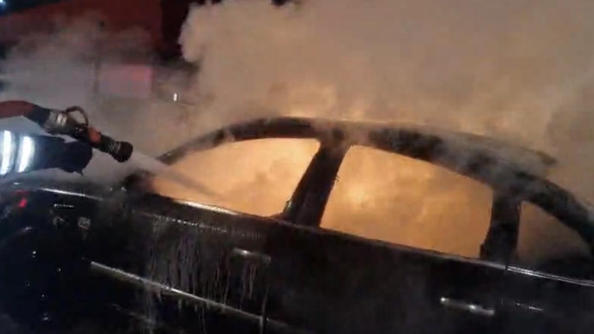 Ekiplerin müdahalesiyle söndürülen yangında, araç kullanılamaz hale geldi.